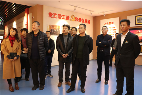 (圖為:金鼎集團(tuán)領(lǐng)導(dǎo)班子參觀天保集團(tuán)保鑫國(guó)際大廈3樓的天保館)
